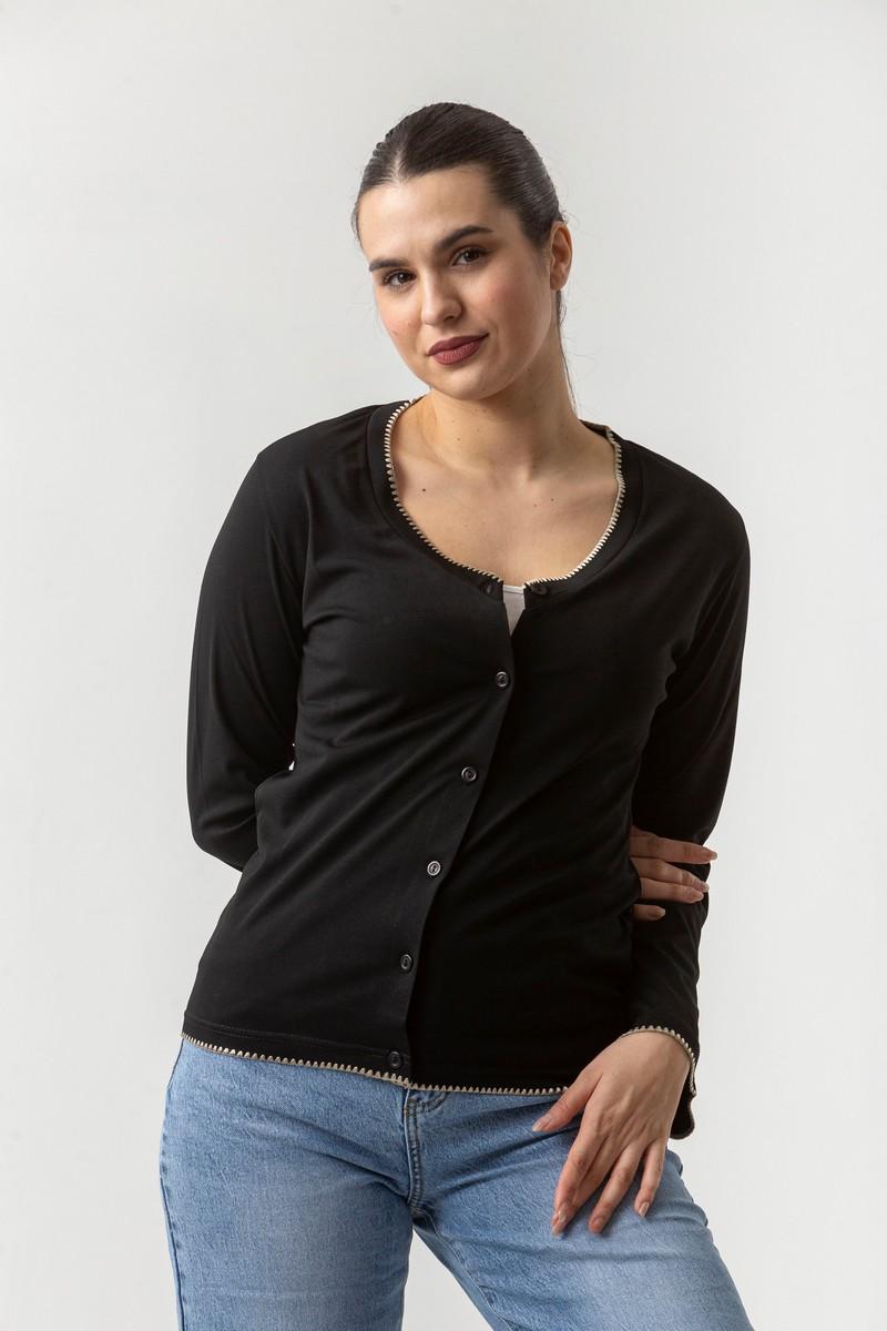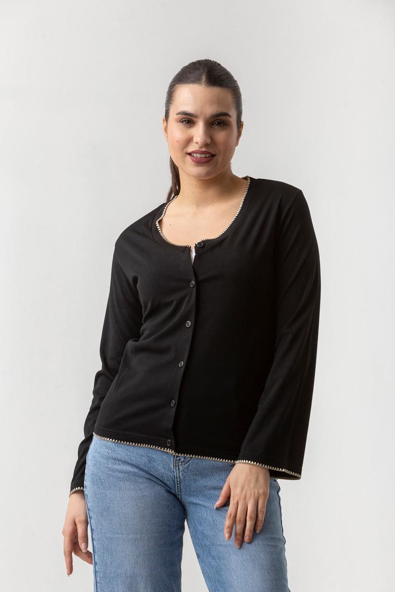 Ζακέτα σε ζέρσευ ύφασμα με κουμπιά και κέντημα σε 2 νούμερα.