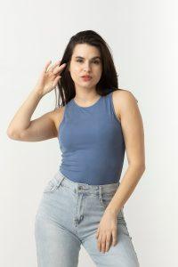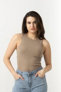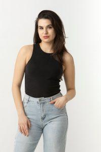 Μπλούζα σε soft ριπ ύφασμα, με παρτούς ώμους.
