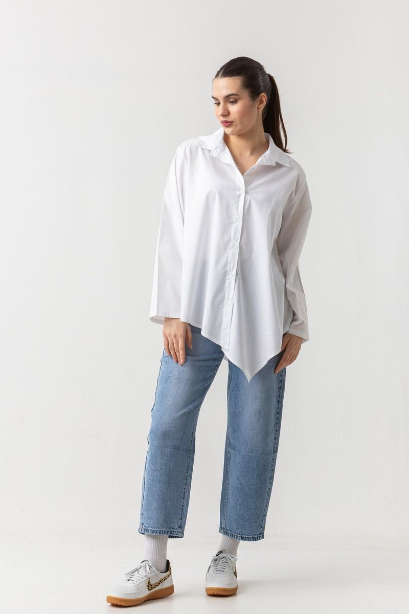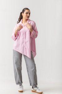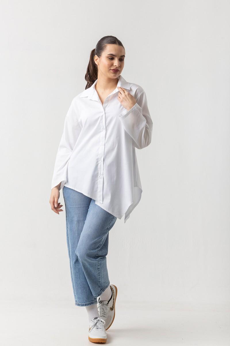 Πουκάμισο σε σταθερό ύφασμα ασύμμετρο με μύτη.