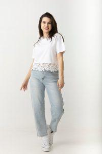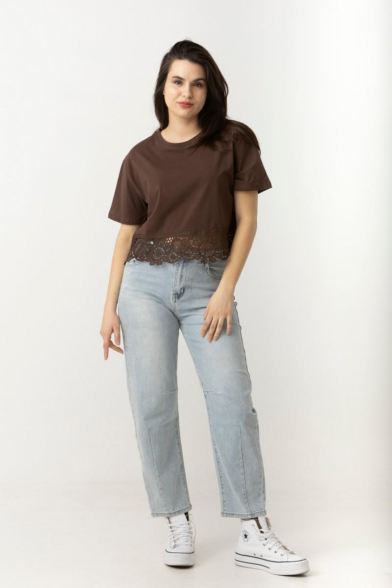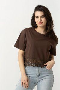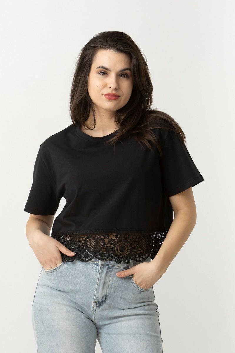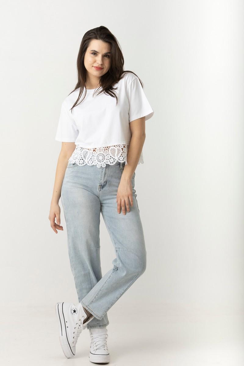 Μπλουζάκι βαμβ. cropped δαντέλα