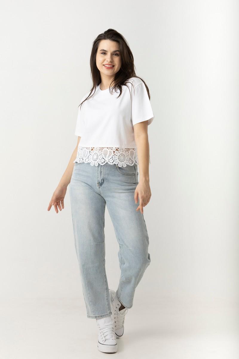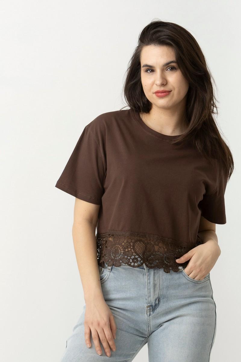 Μπλουζάκι με δαντέλα κάτω, one-size, σε βαμβακολύκρα.