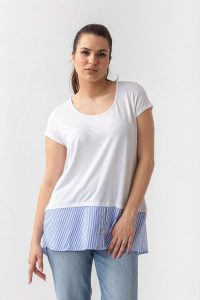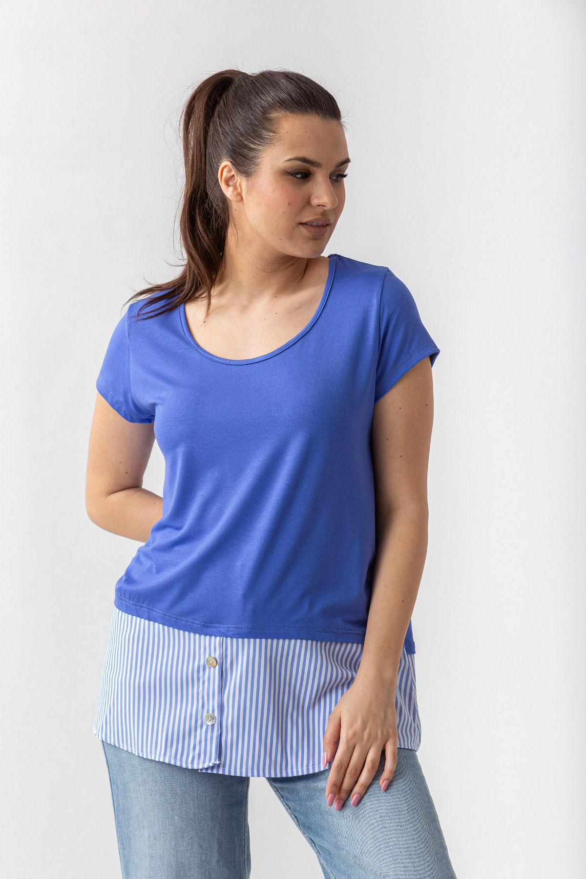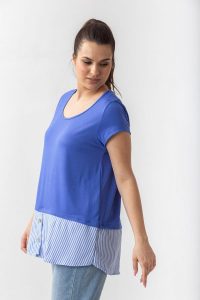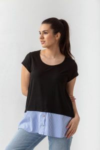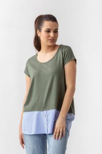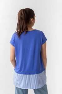 Μπλούζα σε ελαστικό βισκόζ ύφασμα, με διπλό σταθερό ύφασμα πουκαμίσου στο κάτω μέρος.