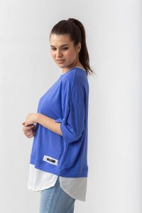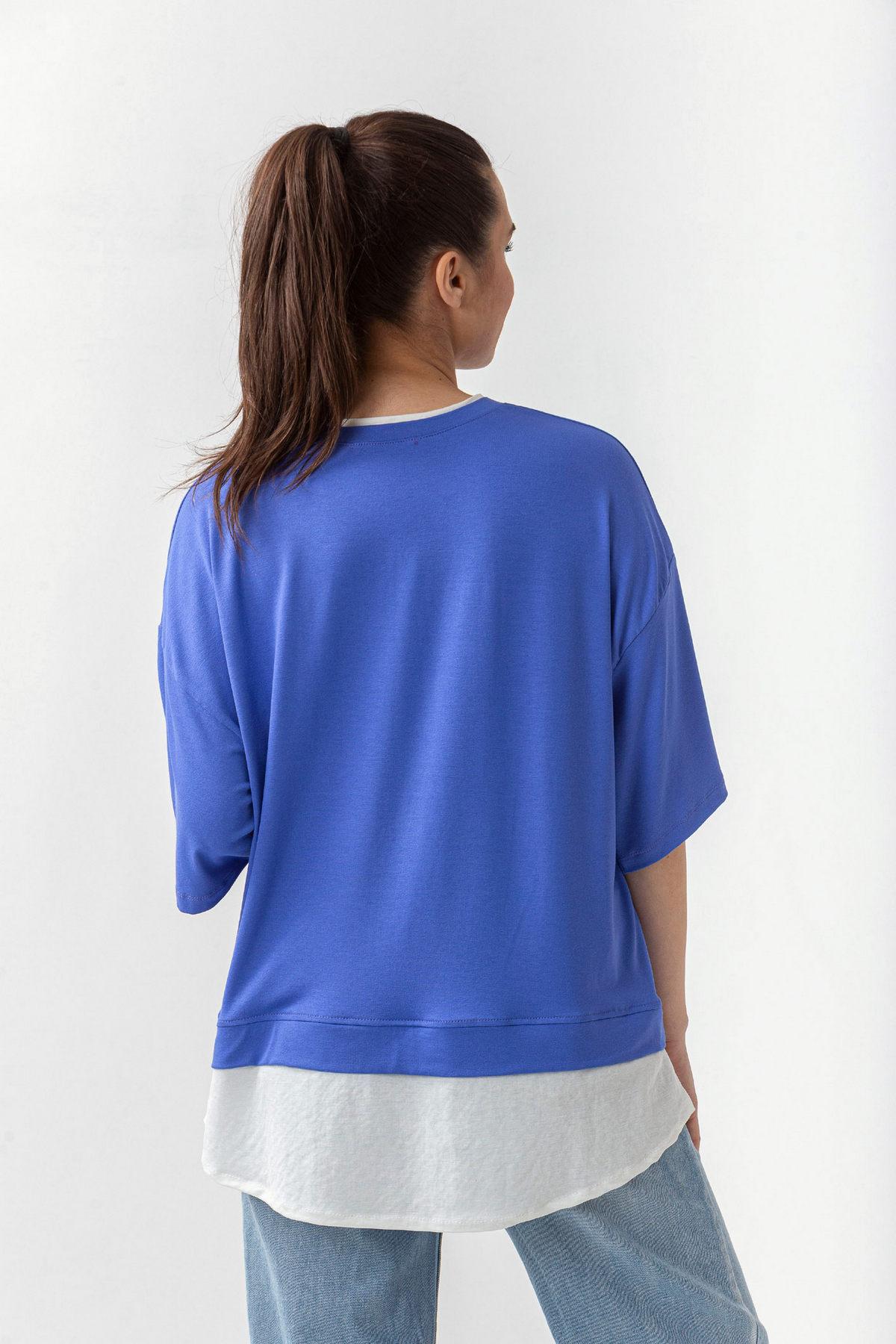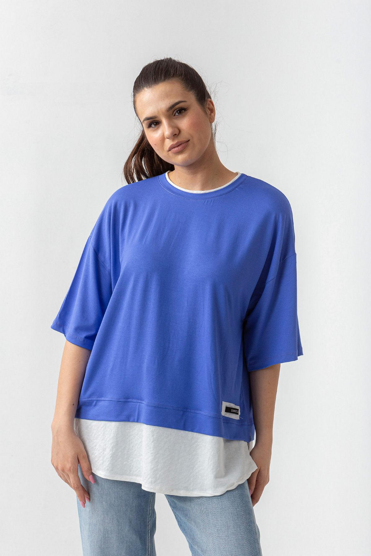 Μπλούζα σε ελαστικό βισκόζ ύφασμα, oversized με διπλό σταθερό ύφασμα πουκαμίσου στο κάτω μέρος.