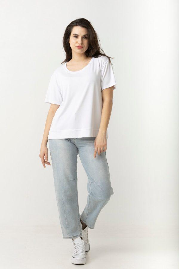 Μπλούζα σε σταθερό βουάλ ύφασμα, με κουμπάκι στην πλάτη.