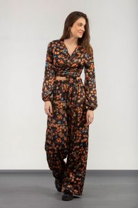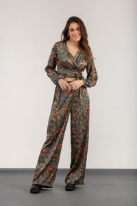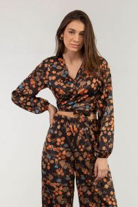Μπλούζα εμπριμέ σατέν σούρες
