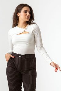 Μπλούζα σε ελαστικό ύφασμα ζέρσευ, σε στενή γραμμή.
