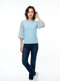 Μπλούζα one-size ελαστική με διάφανο πουά μανίκι.
