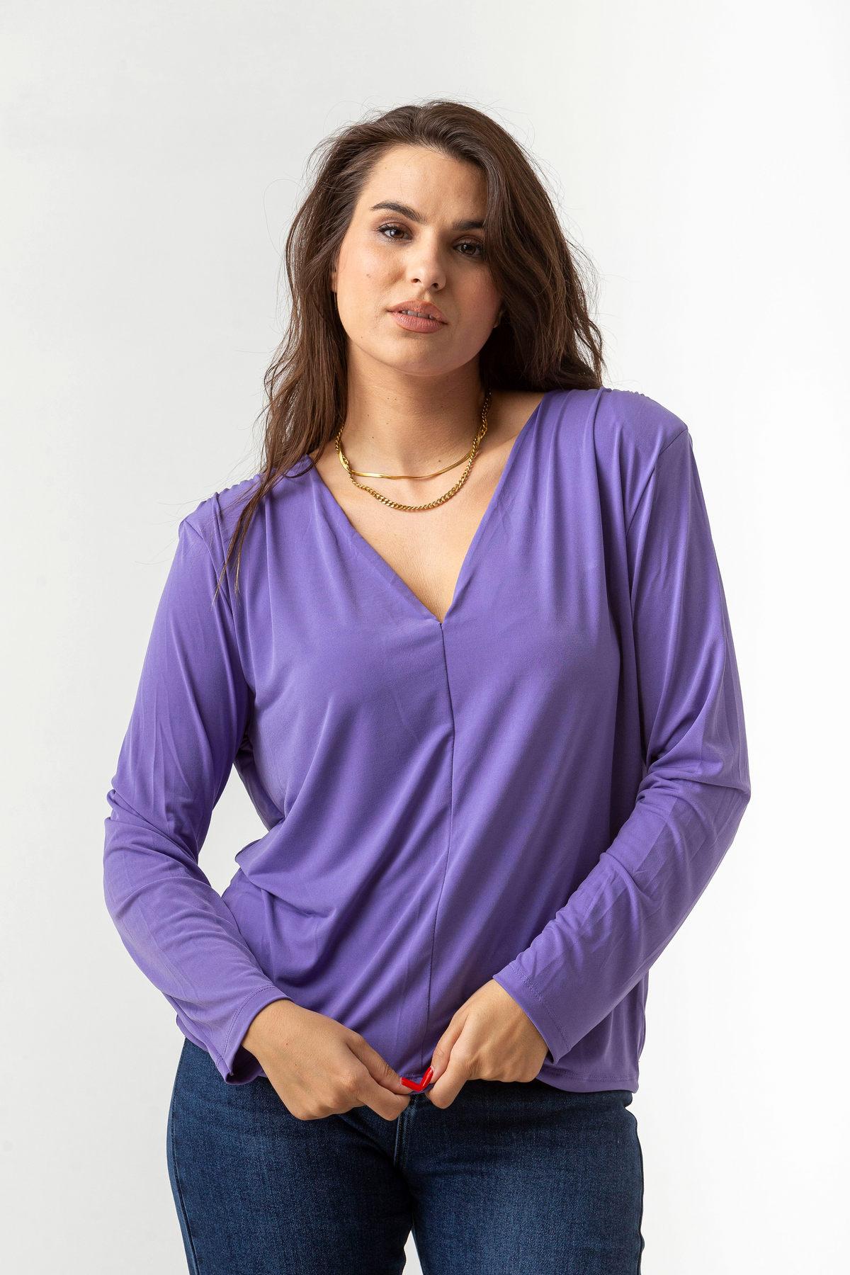 Μπλούζα σε ελαστικό ύφασμα ζέρσευ με βάτες, σε άνετη γραμμή.