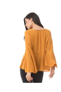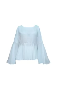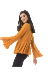Μπλούζα σε σταθερό ύφασμα,ζωρζέτα με φαρδύ βολάν στο μανίκι.