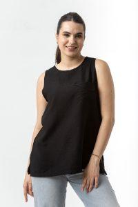 Μπλούζα one-size σε σταθερό ύφασμα με τσέπη.