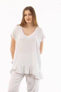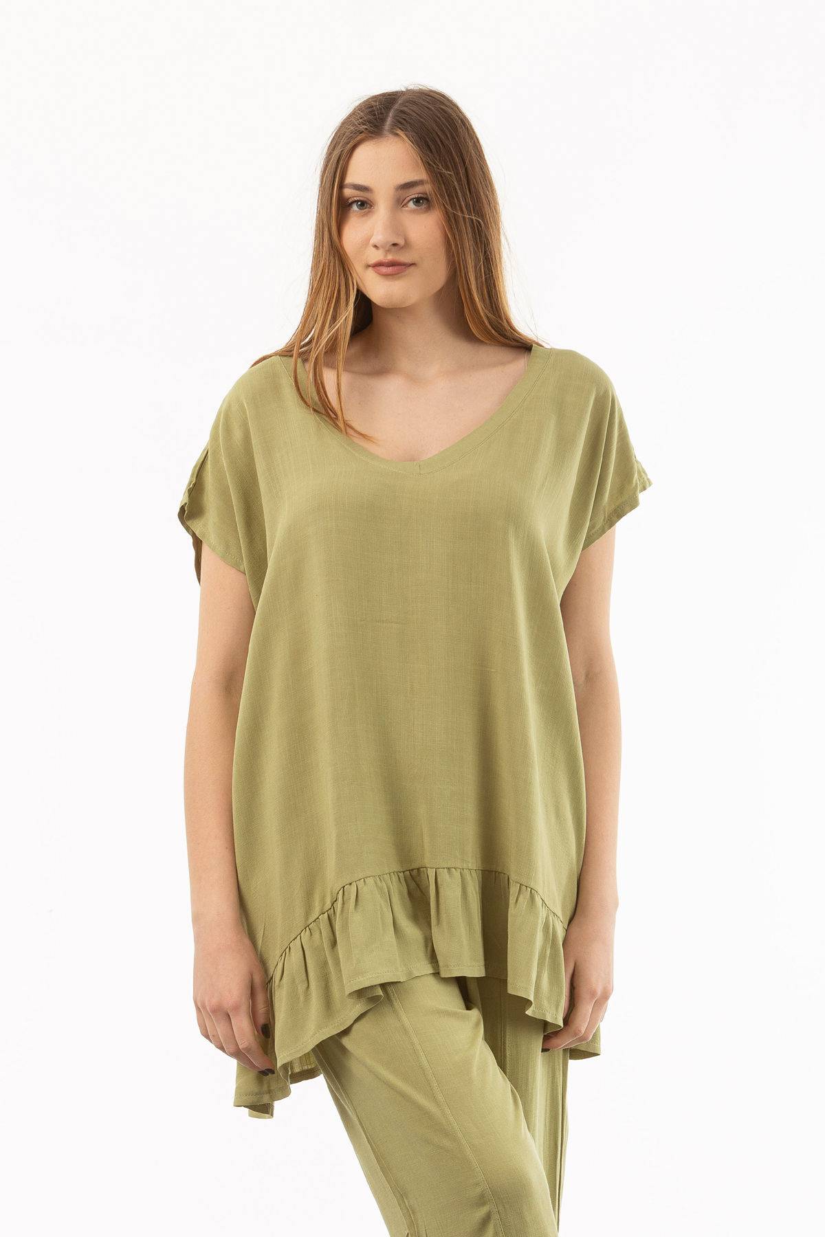 Μπλούζα λινό V βολάν