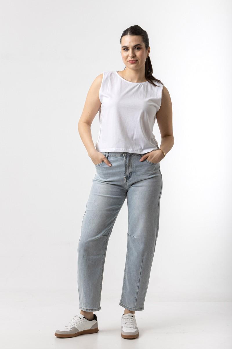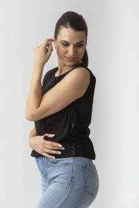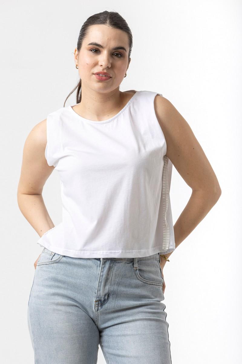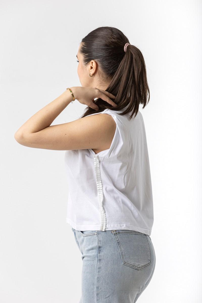 Μπλούζα σε βαμβακερό μακό ύφασμα με σατέν τρέσα στο πλάι.