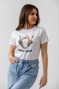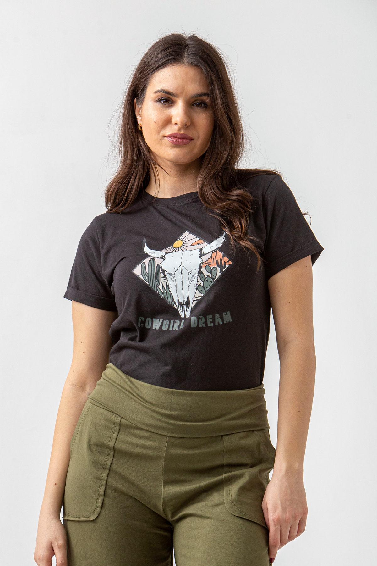 Μπλούζα κοντομάνικη σε βαμβακερό μακό ύφασμα.