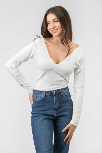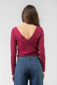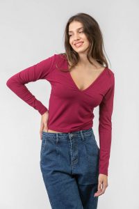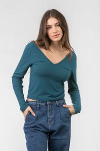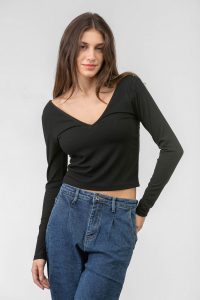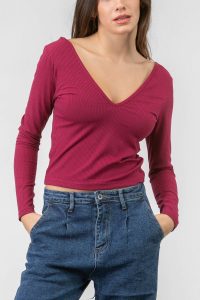 Μπλούζα στενή σε ελαστικό ριπ ύφασμα με λαιμόκοψη V.