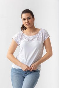 Μπλούζα σε βισκόζ με ελαστική δανδέλα στο πάνω μέρος.