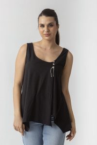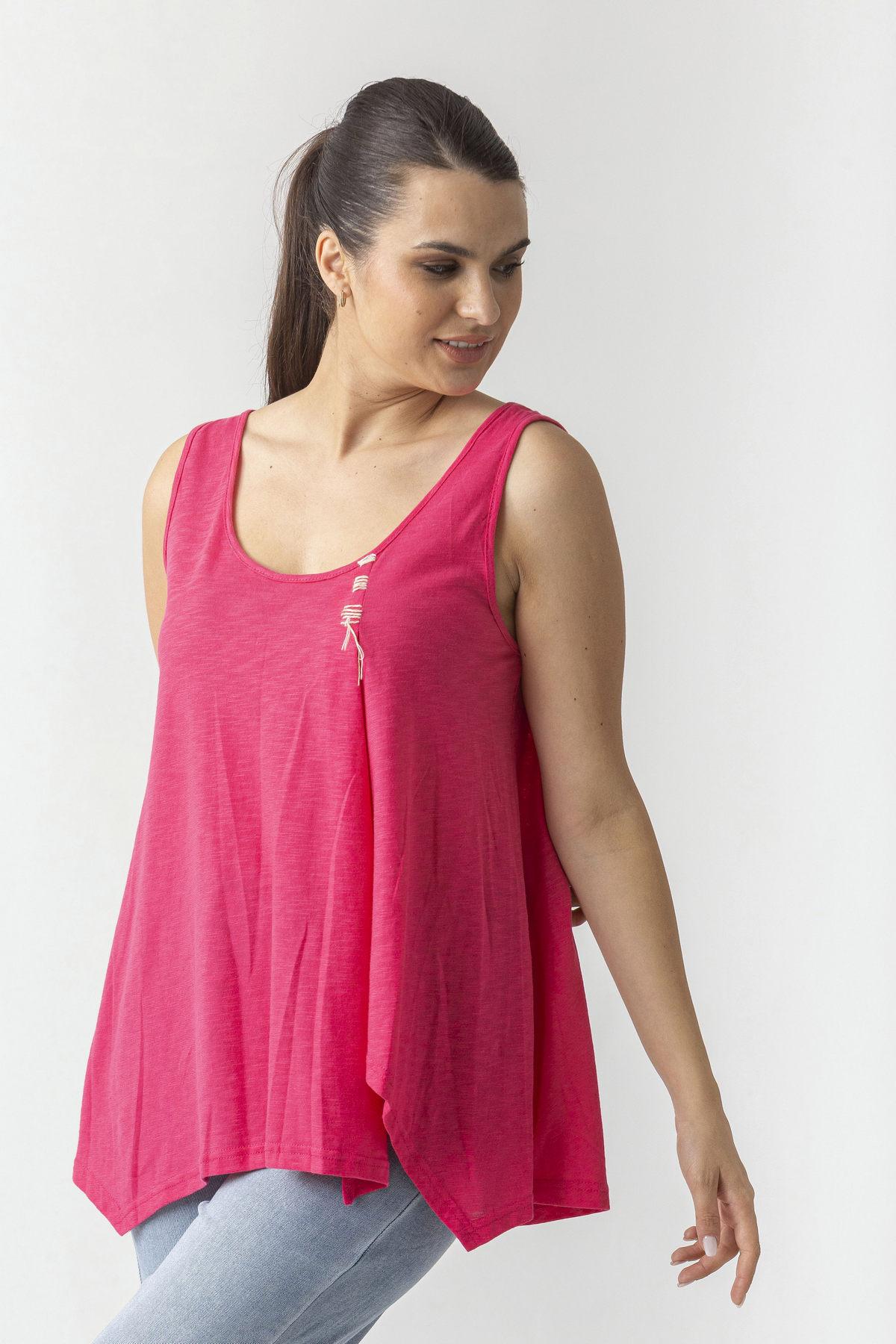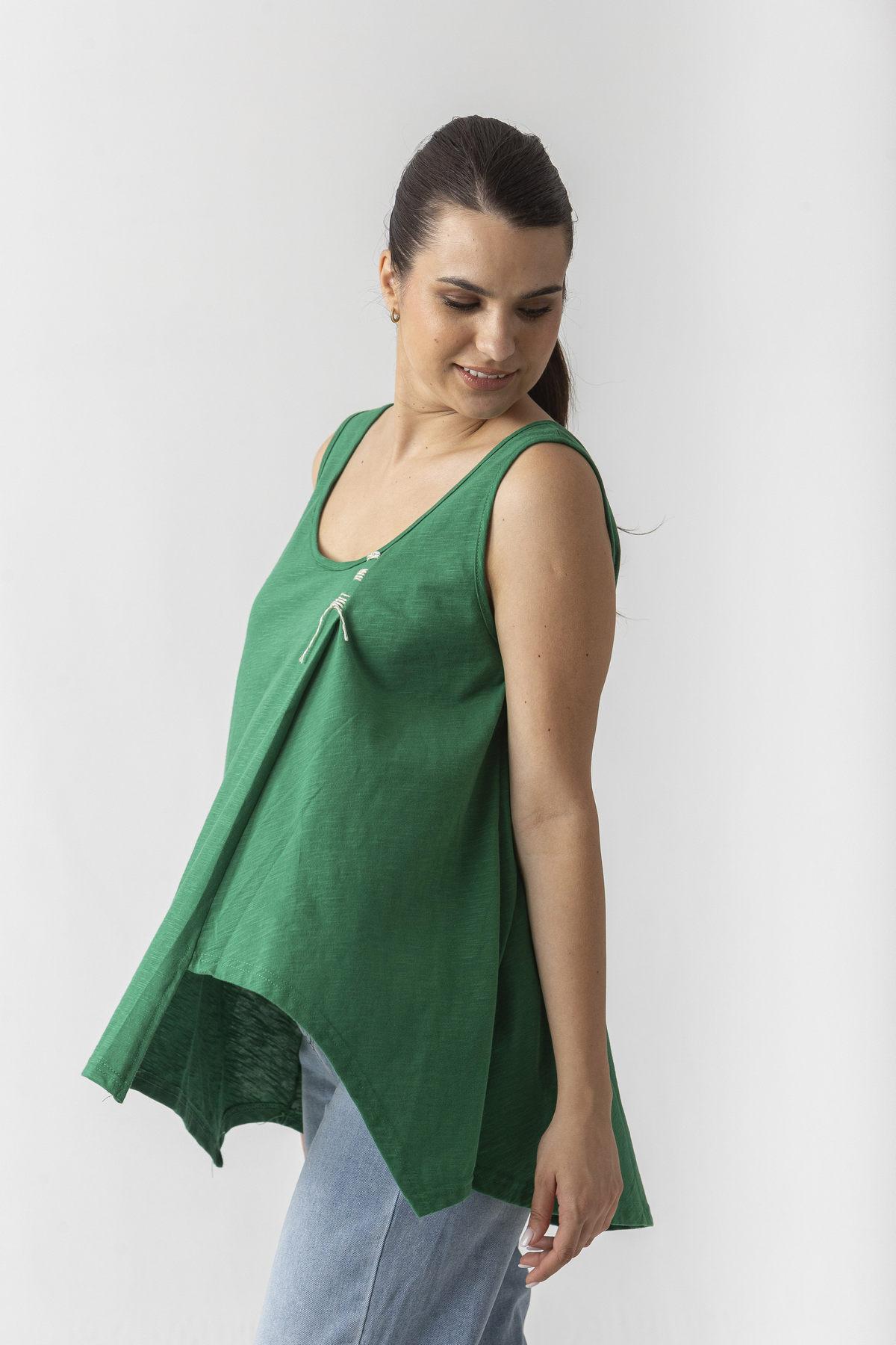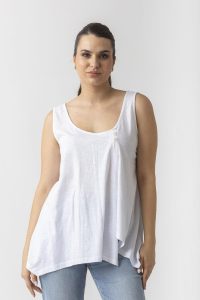 Αμάνικη μπλούζα σε βαμβακερή φλάμα με μύτες και κέντημα.
