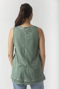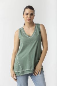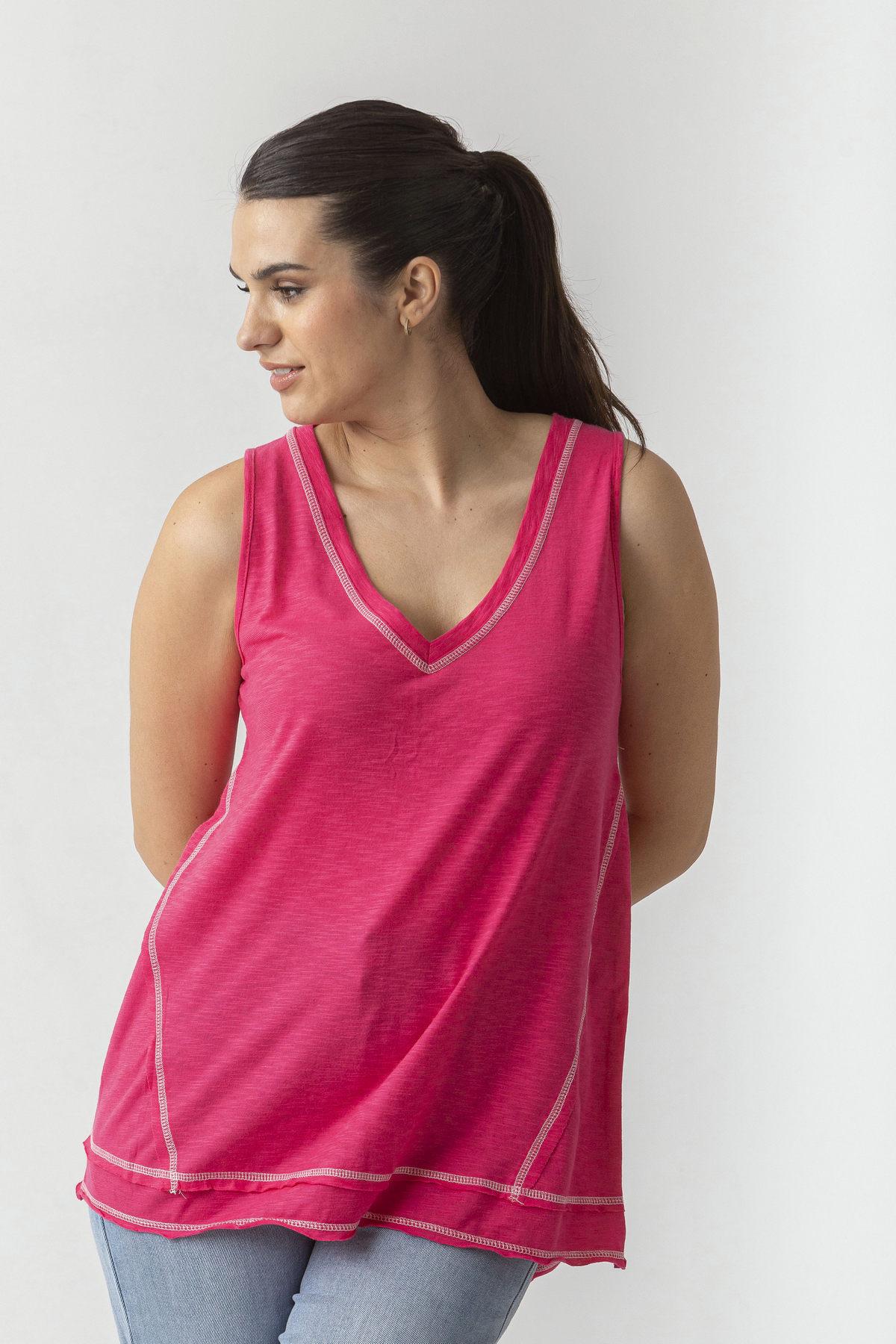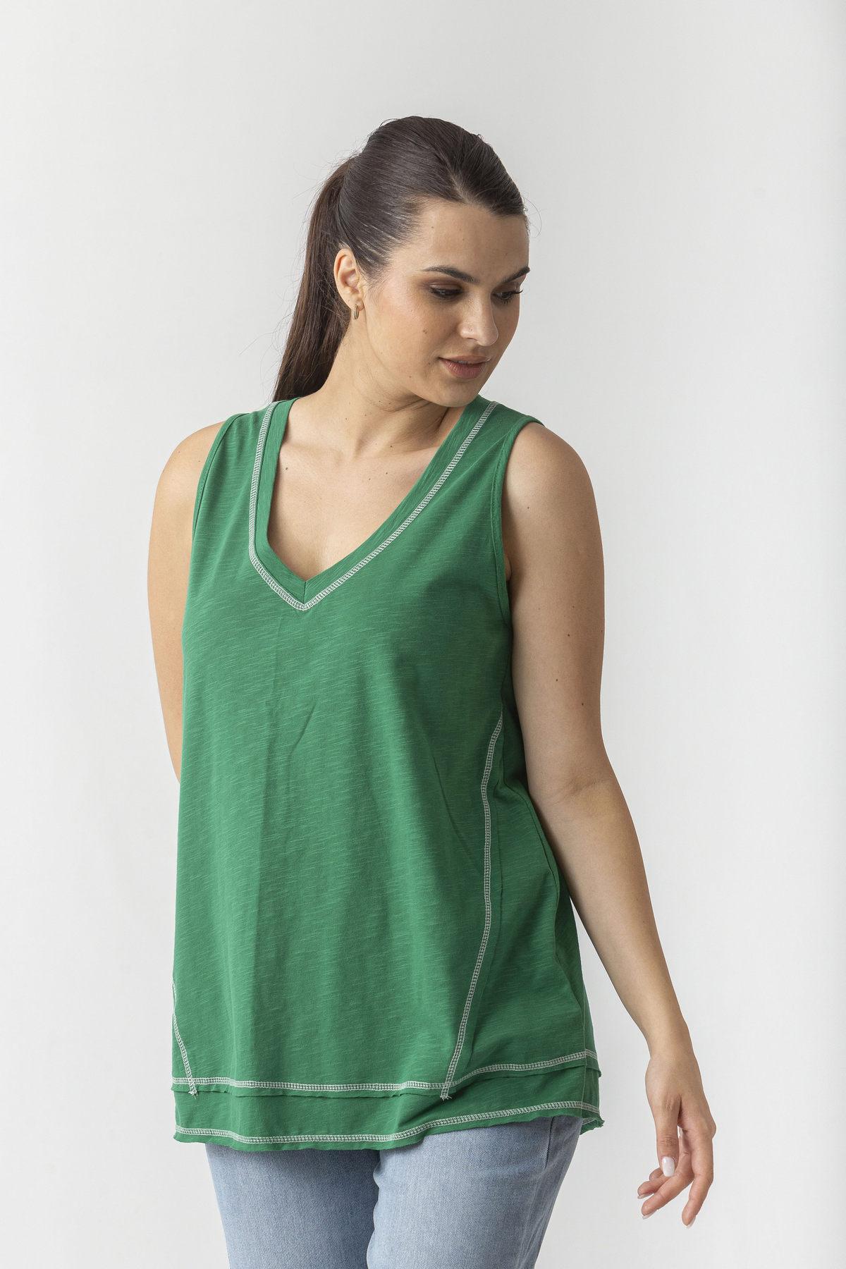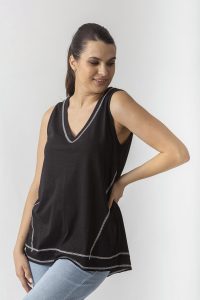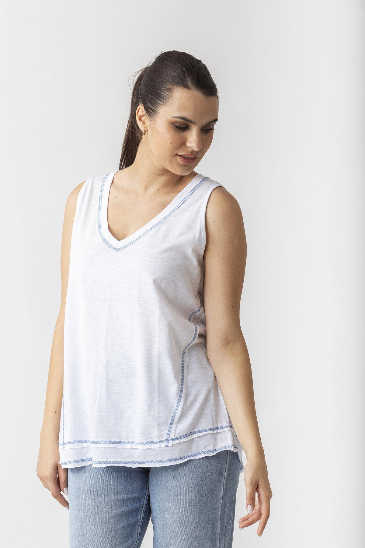 Αμάνικη μπλούζα σε βαμβακερή φλάμα με τριόλες.