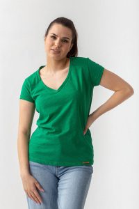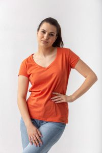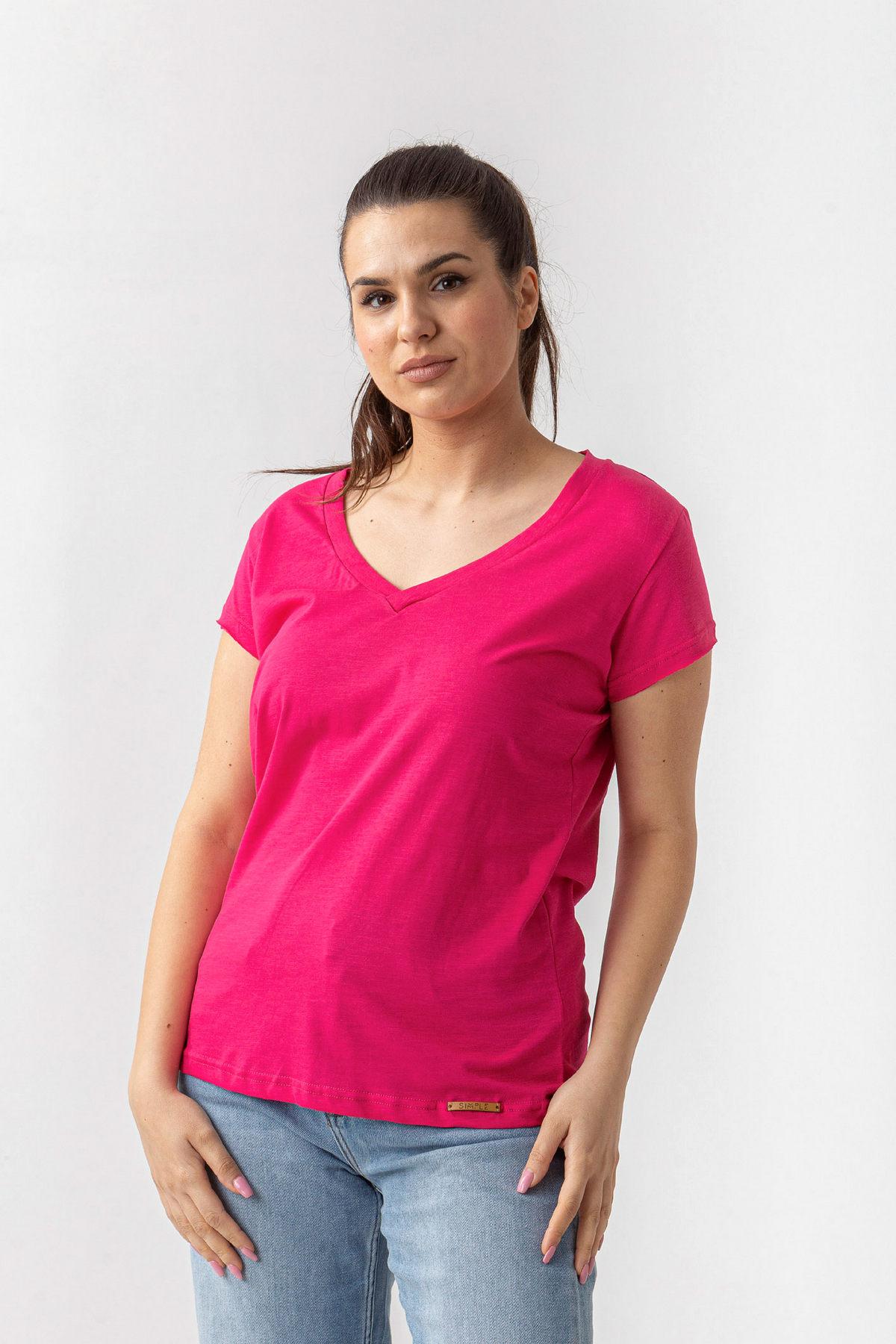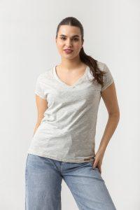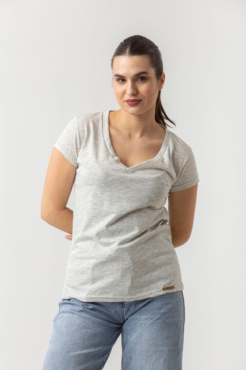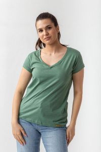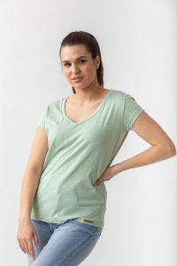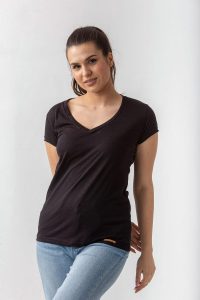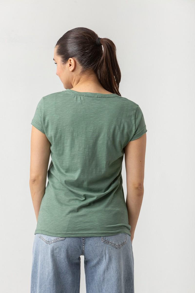 Μπλούζα σε βαμβακερή φλάμα με V-λαιμόκοψη και δερματάκι.