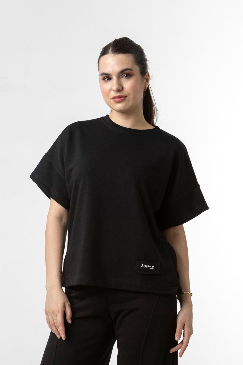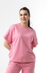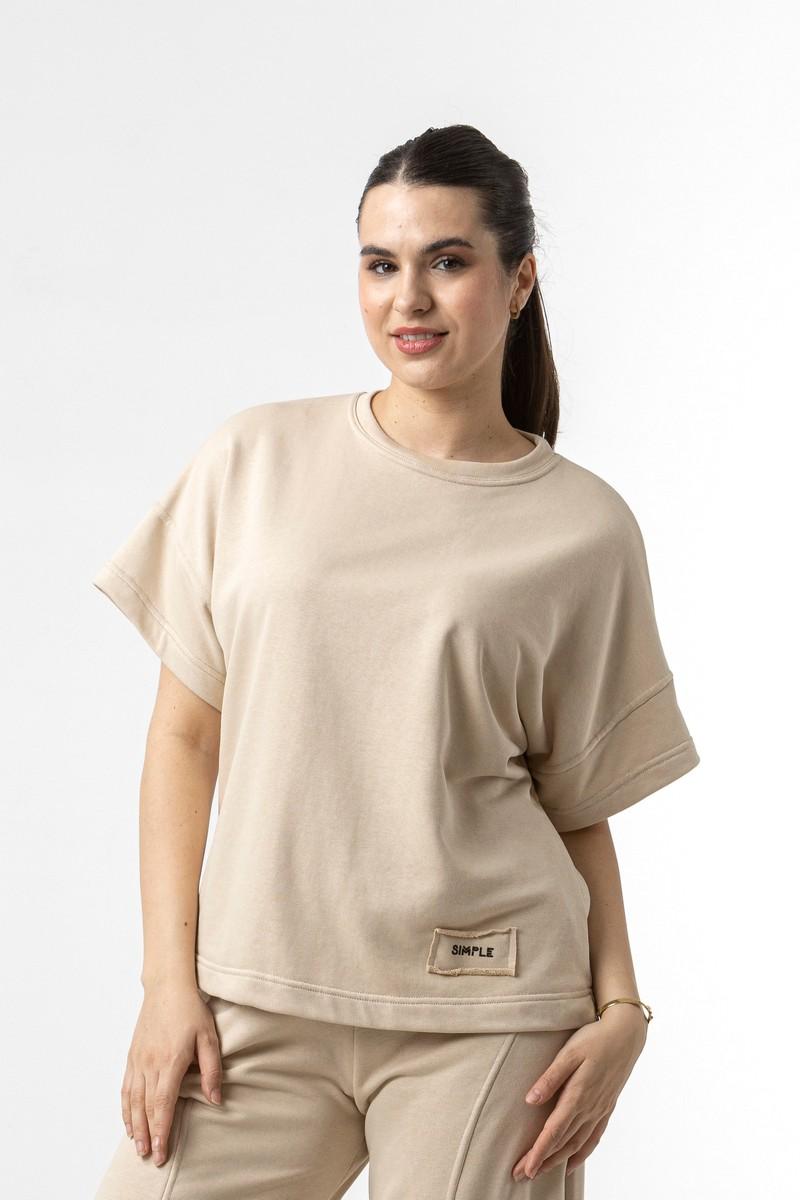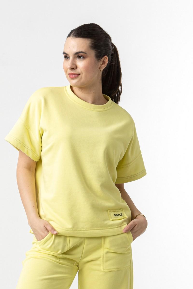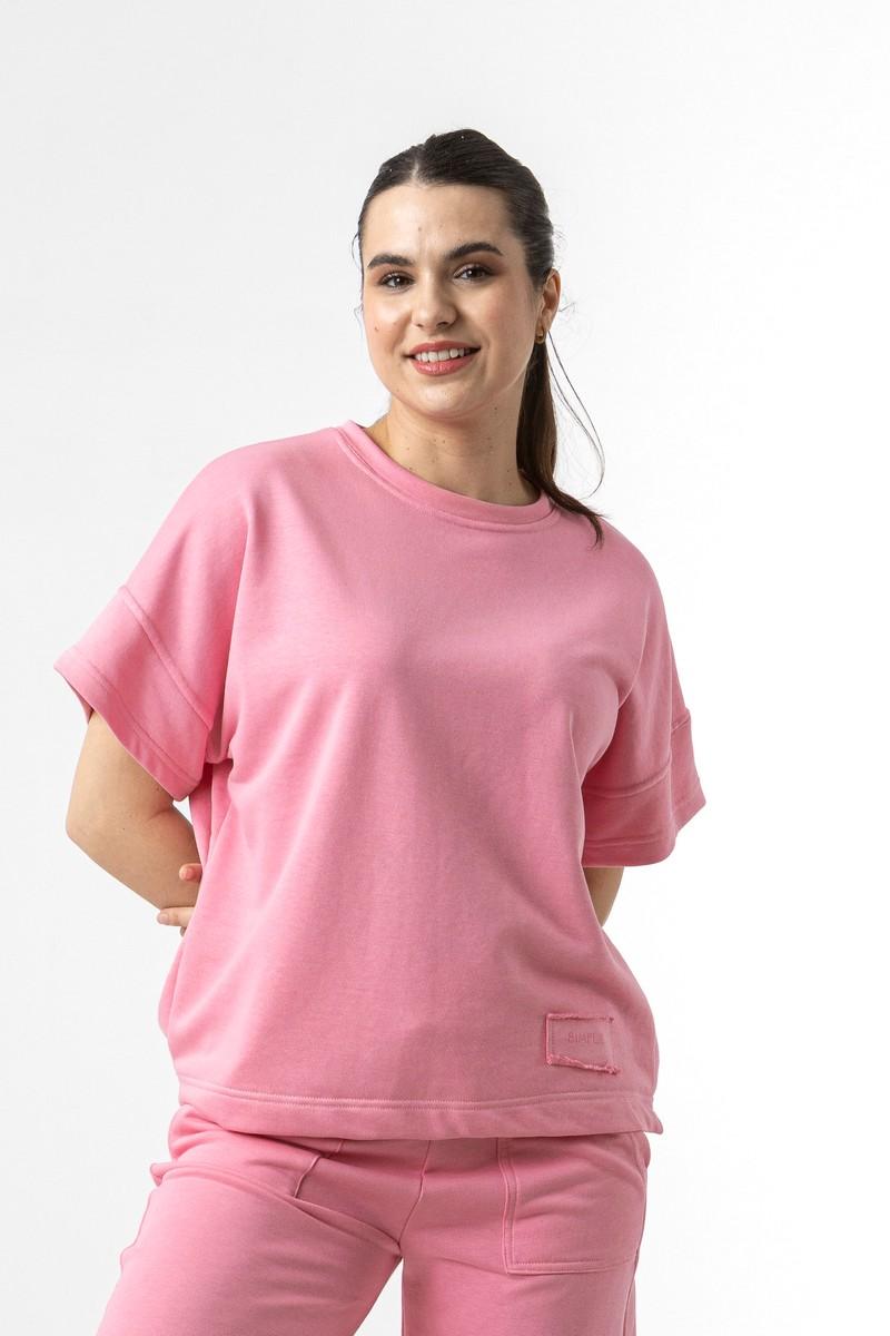 Μπλούζα σε φούτερ ύφασμα, με κοντό μανίκι και λαιμόκοψη.