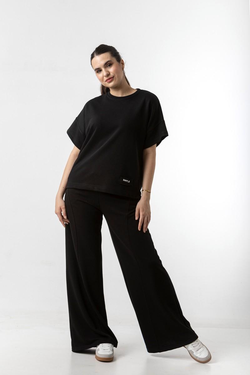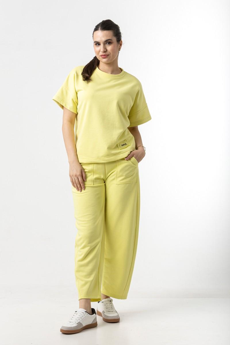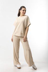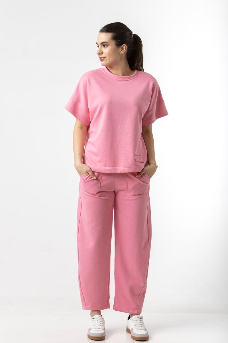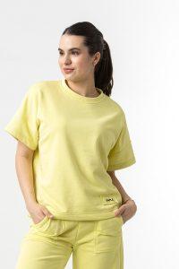 Μπλούζα σε φούτερ ύφασμα, με κοντό μανίκι και λαιμόκοψη.