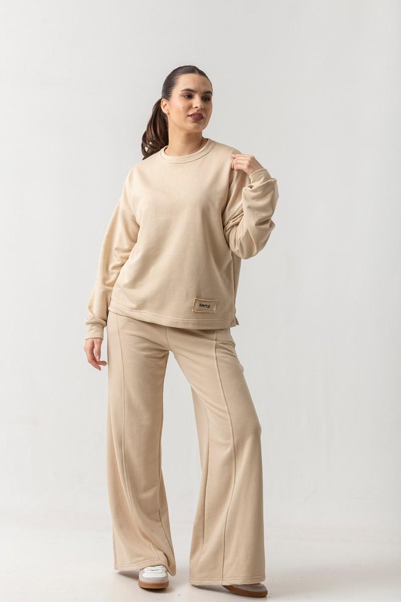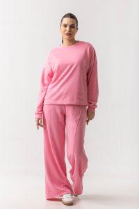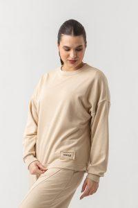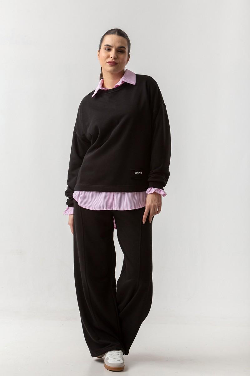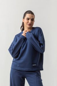 Μπλούζα σε φούτερ ύφασμα, με μακρύ μανίκι και λαιμόκοψη.