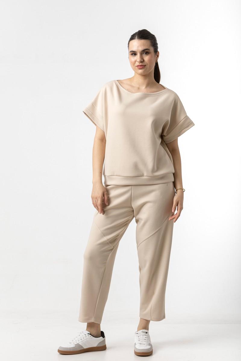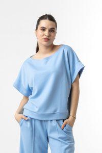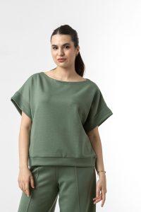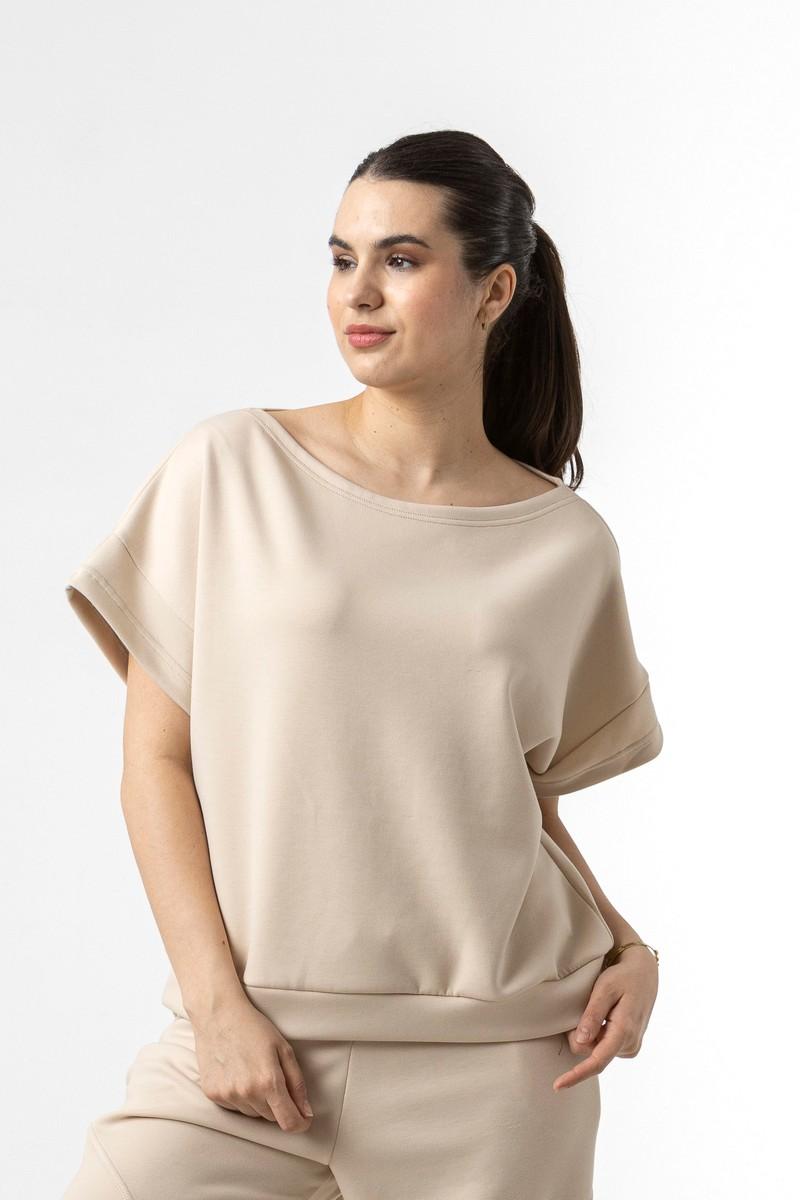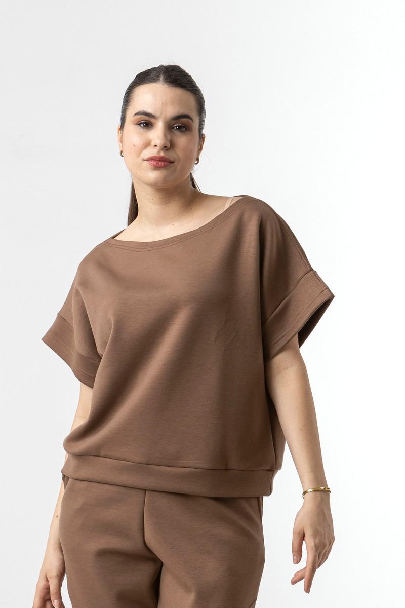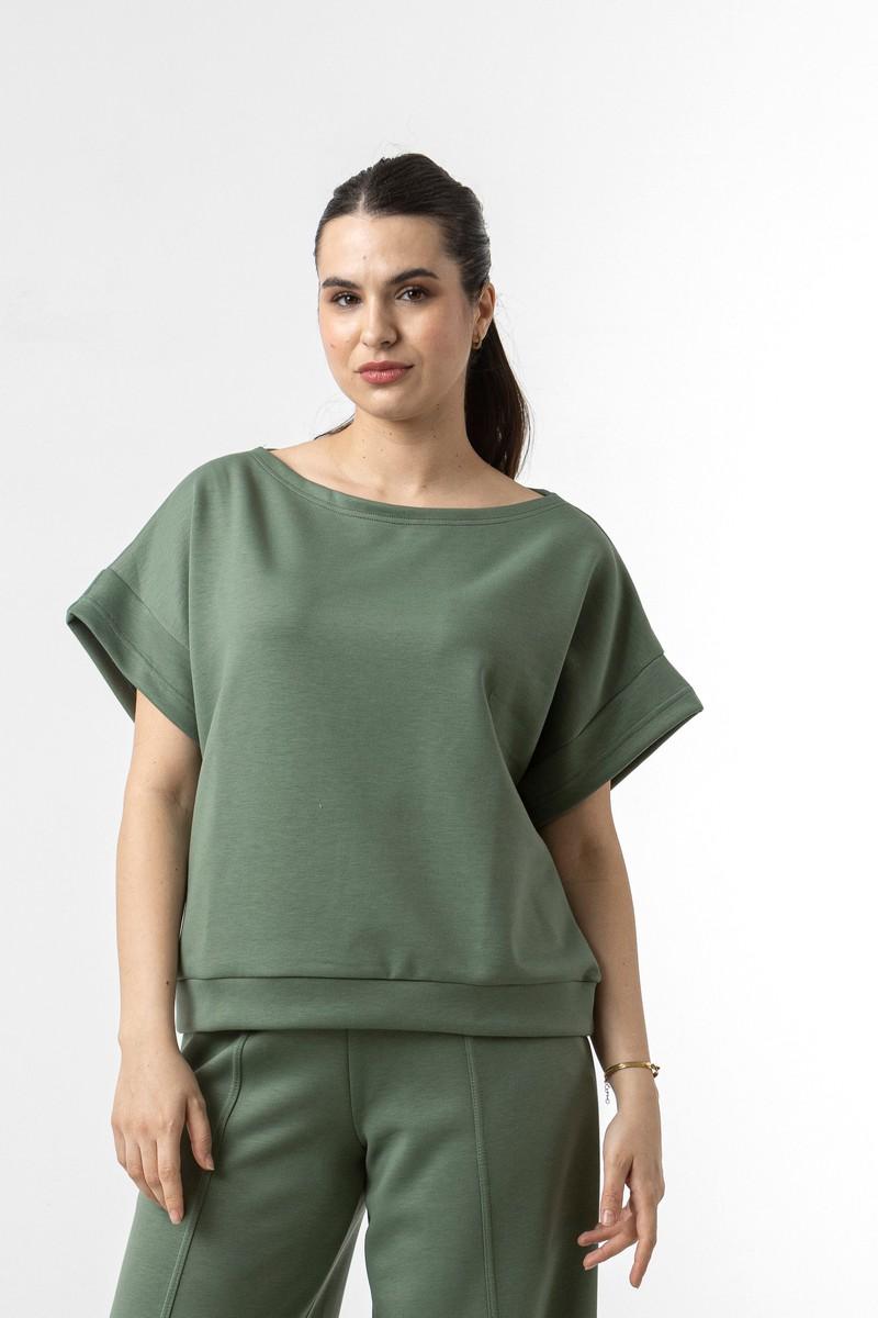 Μπλούζα σε soft ελαστικό ύφασμα, με κοντό μανίκι και χαμόγελο.
