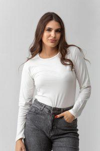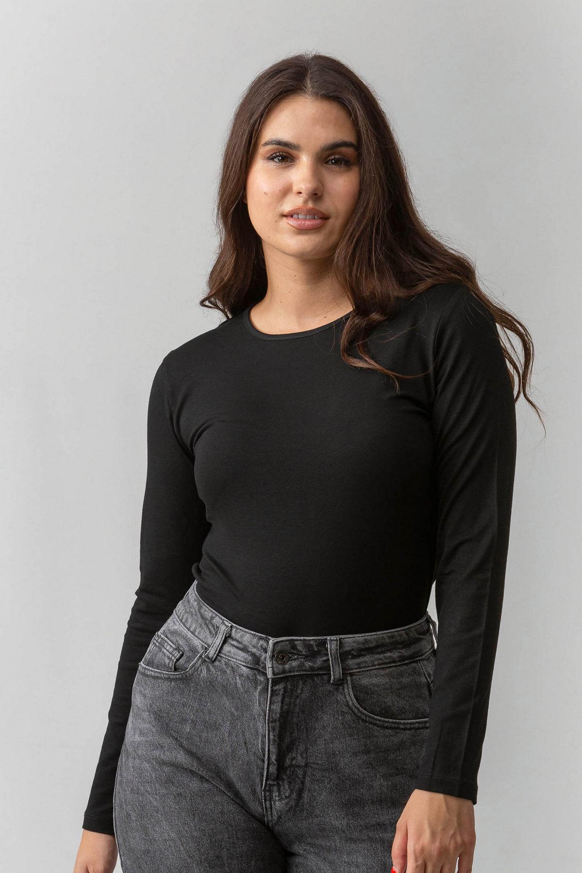 Μπλούζα viscose σε στενή γραμμή με στρογγυλή λαιμόκοψη.
