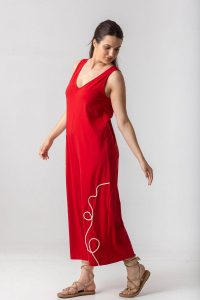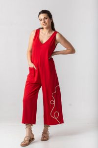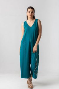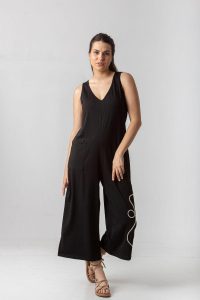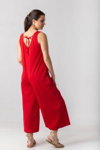 Ολόσωμη φόρμα σε βαμβακερό ελαστικό ύφασμα, με δέσιμο στην πλάτη.