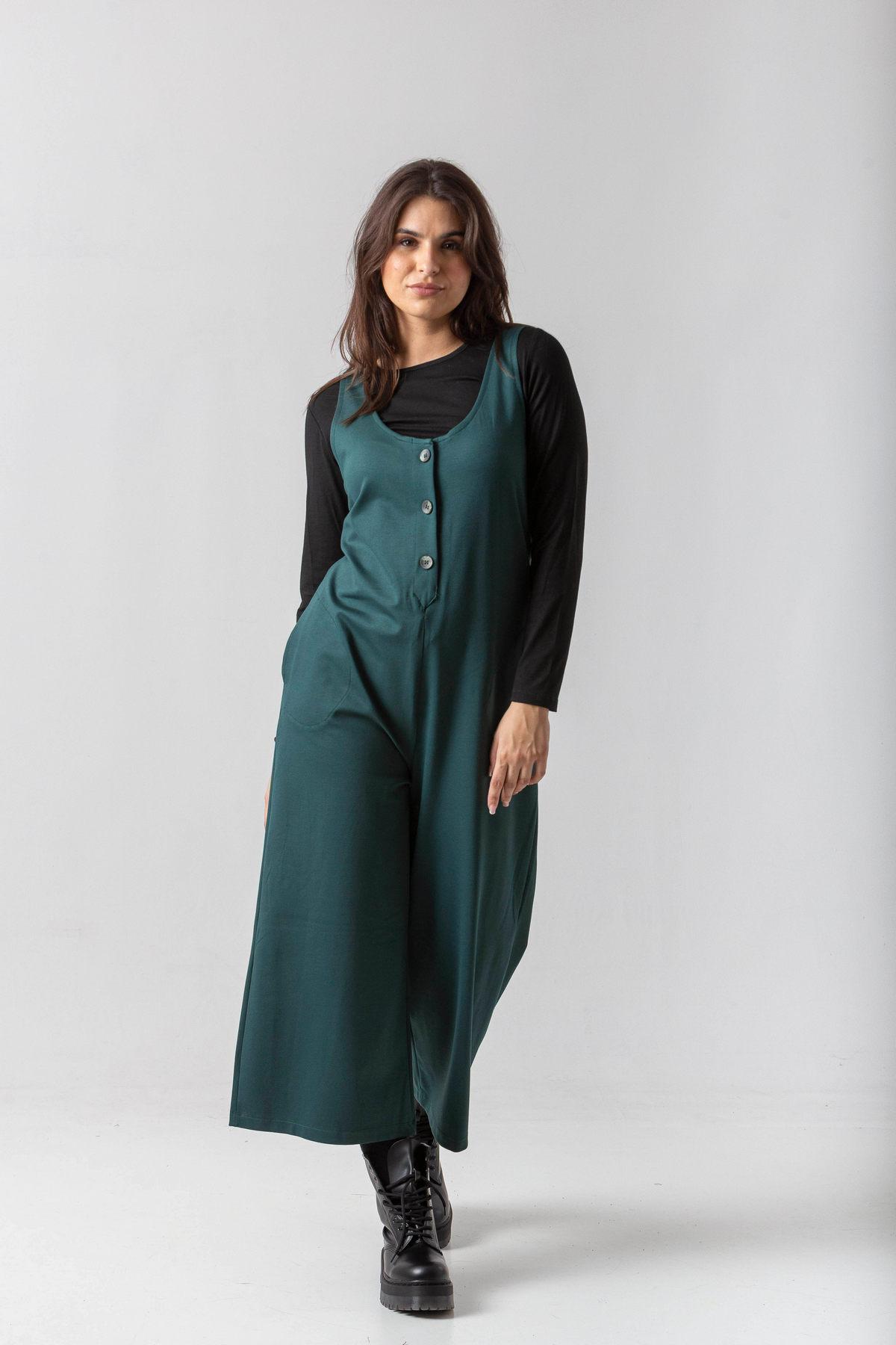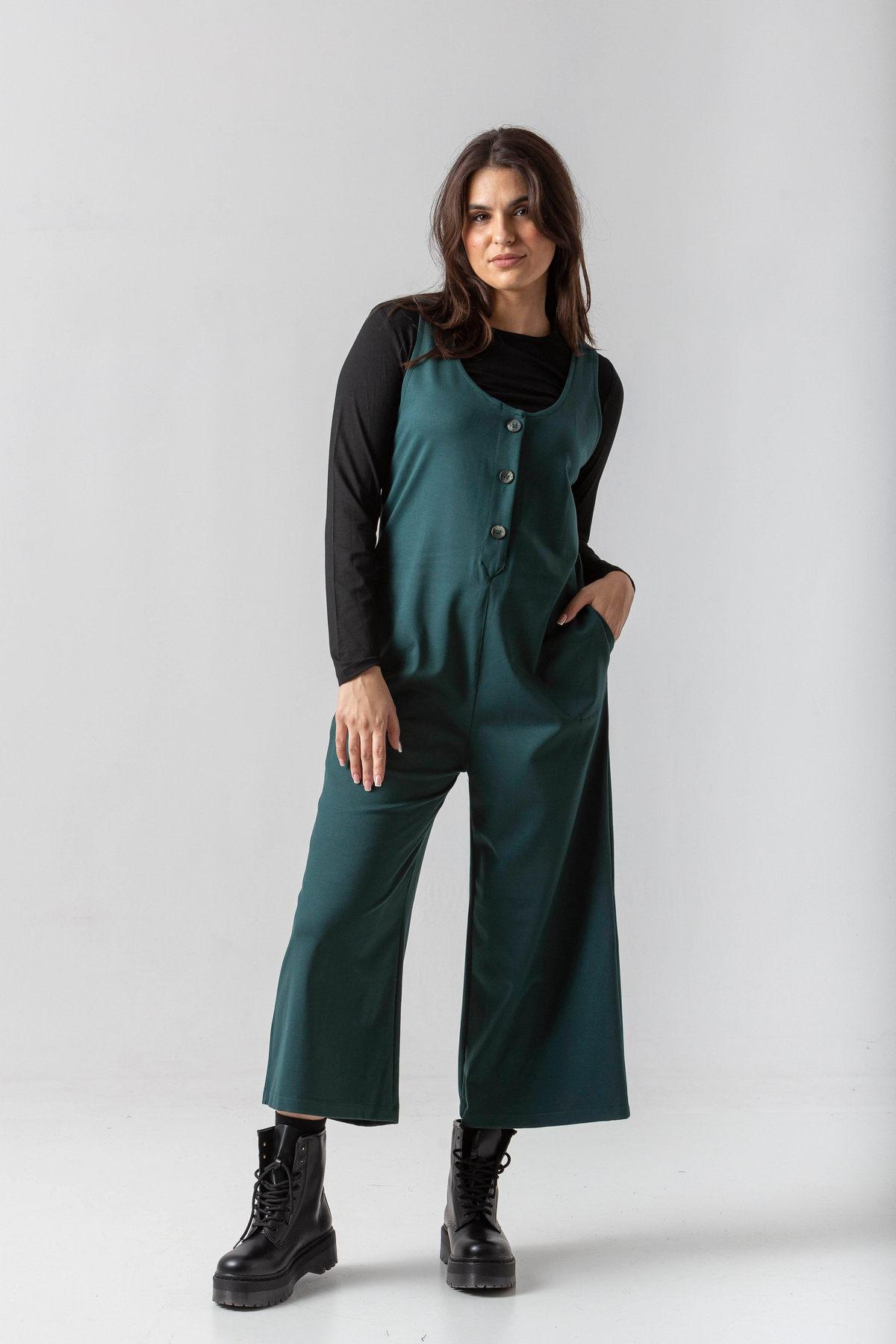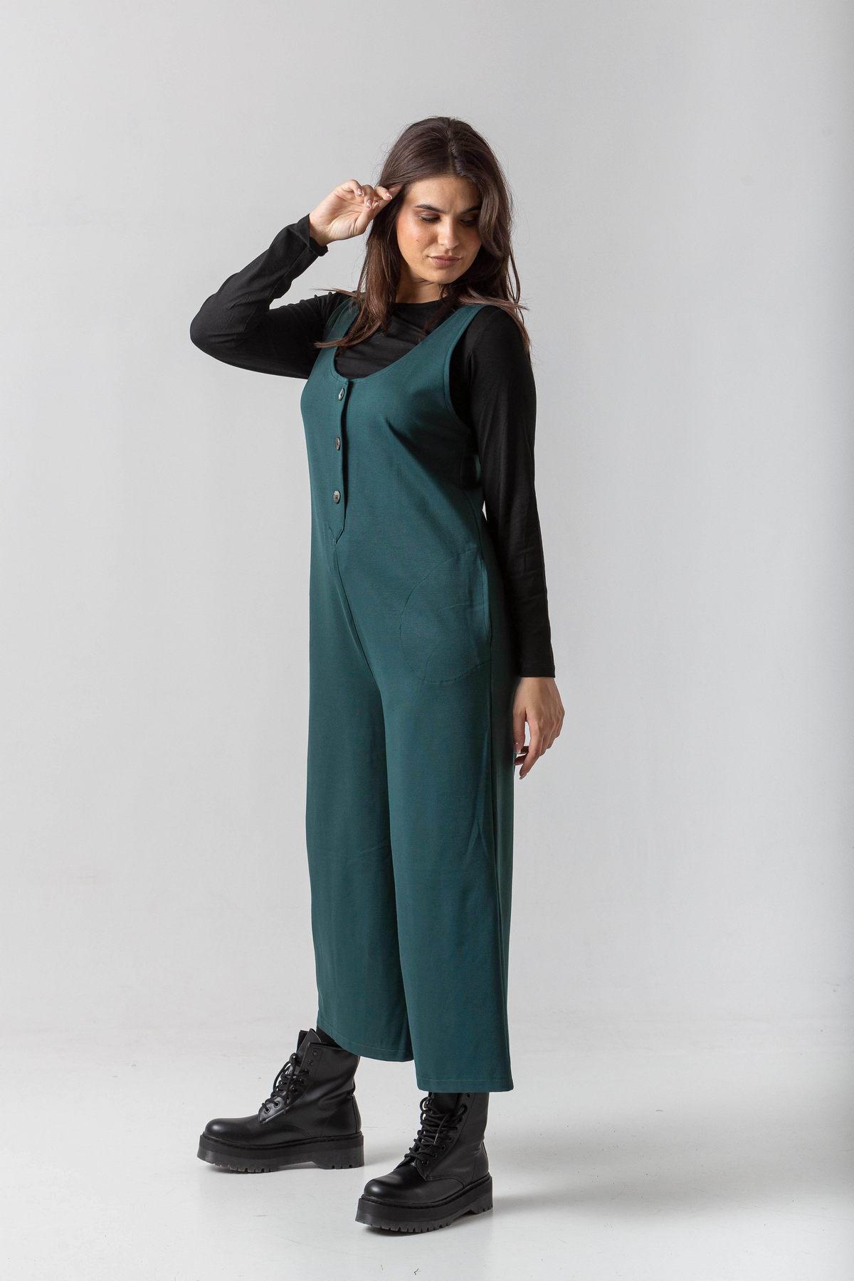 Ολόσωμη φόρμα σε πούντο ύφασμα με κουμπάκια και τσέπες.