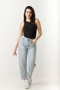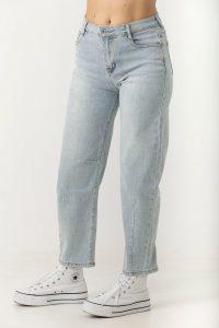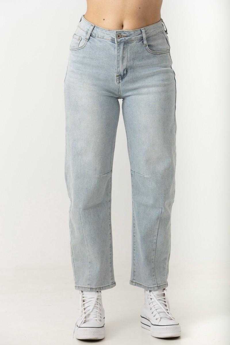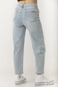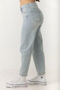 Jeans mom fit ελαστικό ψηλόμεσο με πένσες. Διαθέσιμο σε πέντε νούμερα.