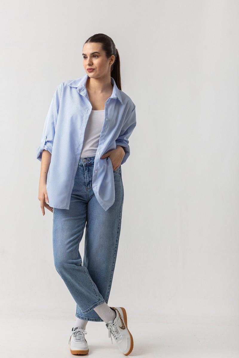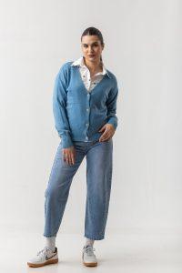 Jeans mom fit ελαστικό ψηλόμεσο. Διαθέσιμο σε πέντε νούμερα.