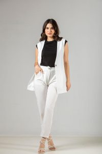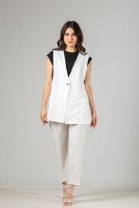 Παντελόνι σε σταθερό TR ριγέ ύφασμα με κλασική γραμμή.