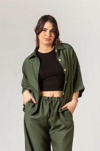 Πουκάμισο oversized σε σταθερό ύφασμα, one-size.
