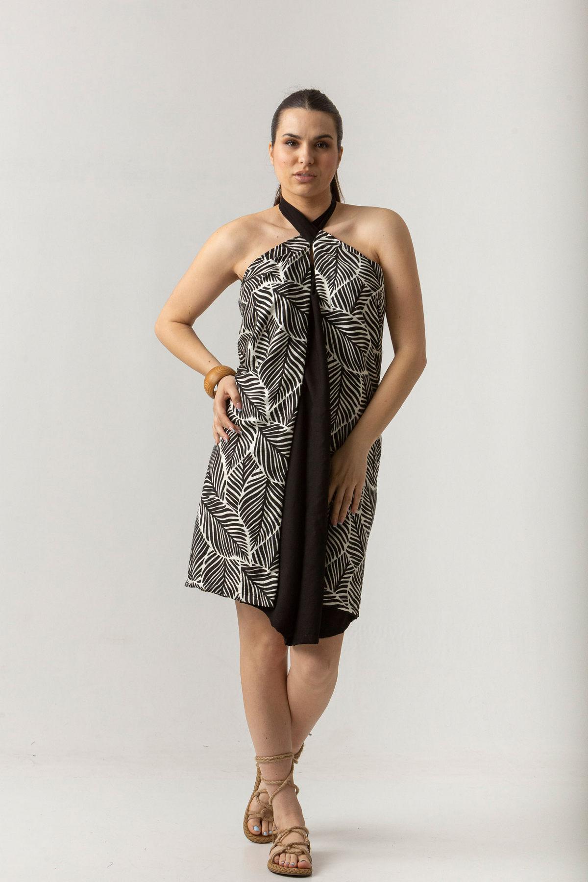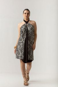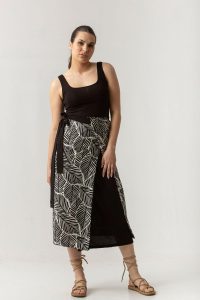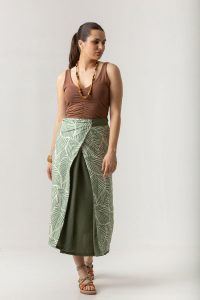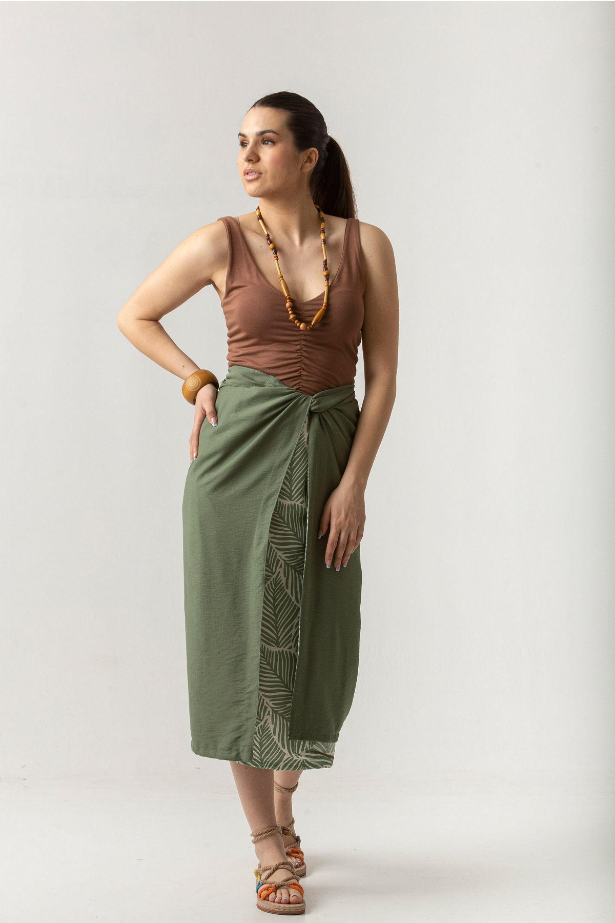 Φούστα δετή one-size σε σταθερό ύφασμα εμπριμέ, φοριέται και από τις 2 πλευρές.