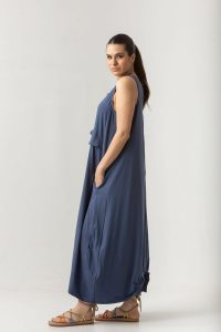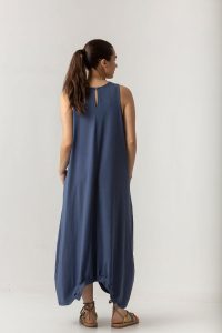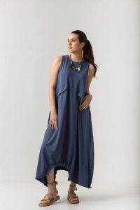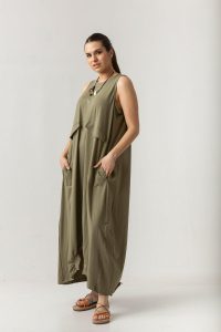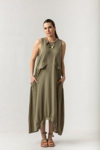 Φόρεμα σε ελαστική βαμβακόλυκρα αμάνικο ,με τσέπες και σούρες στο κάτω μέρος.