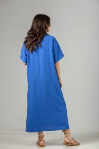 Φόρεμα σε τύπου λινό ύφασμα, με κουμπιά, τσέπη και απλικέ κύκλους.