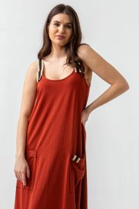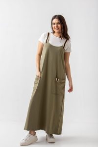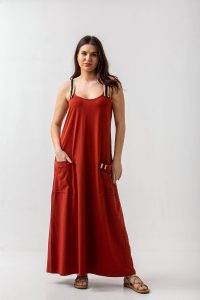 Φόρεμα σε ελαστική βαμβακόλυκρα πλαϊνές τσέπες