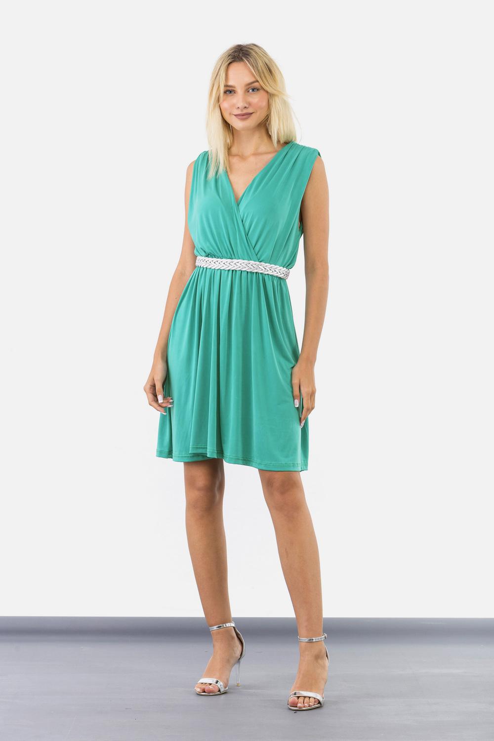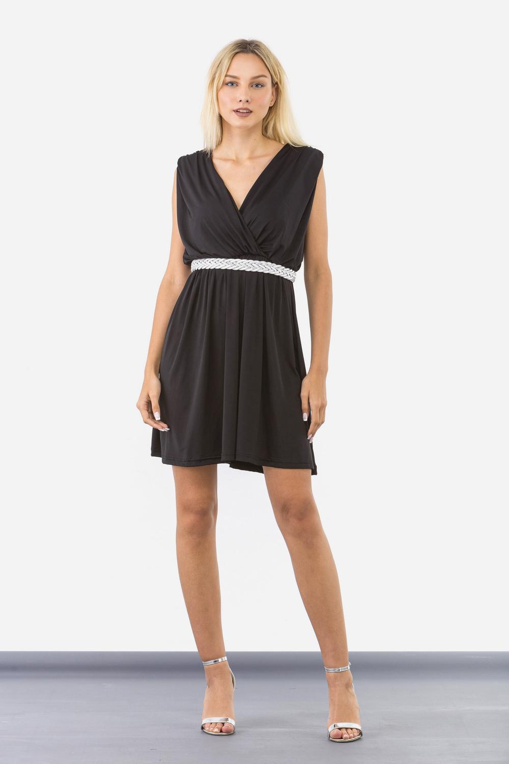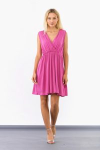 Φόρεμα mini, one-size σε ελαστικό ύφασμα με κρουαζέ λαιμόκοψη και λάστιχο στη μέση.