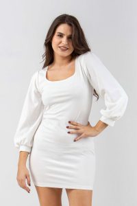 Φόρεμα σε ελαστικό scuba ύφασμα με φουσκωτό μανίκι.